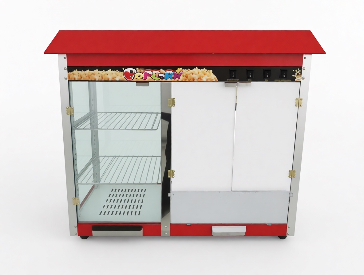 Аппарат для изготовления попкорна. Оснащён инфракрасной лампой для подогрева готового продукта и демонстрационной витриной . Корпус выполнен из нержавеющей стали, боковые панели — из закаленного стекла, чаша имеет антипригарное покрытие. Разовая загрузка — 225гр. Производительность — 160 порций/ч.