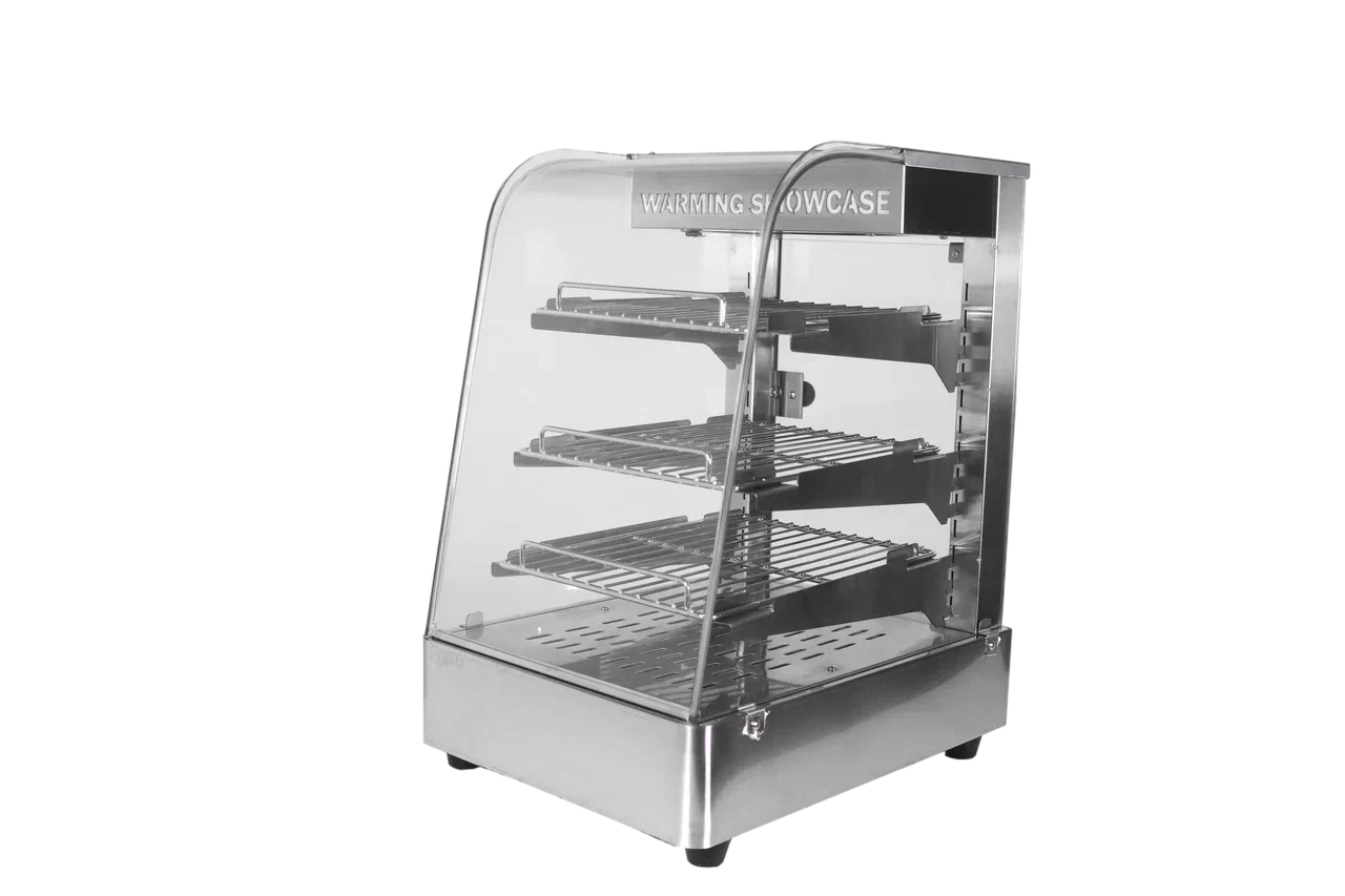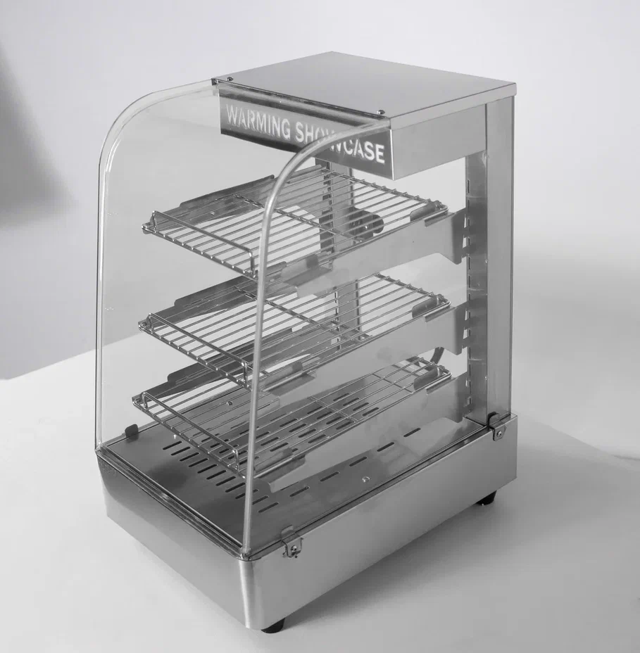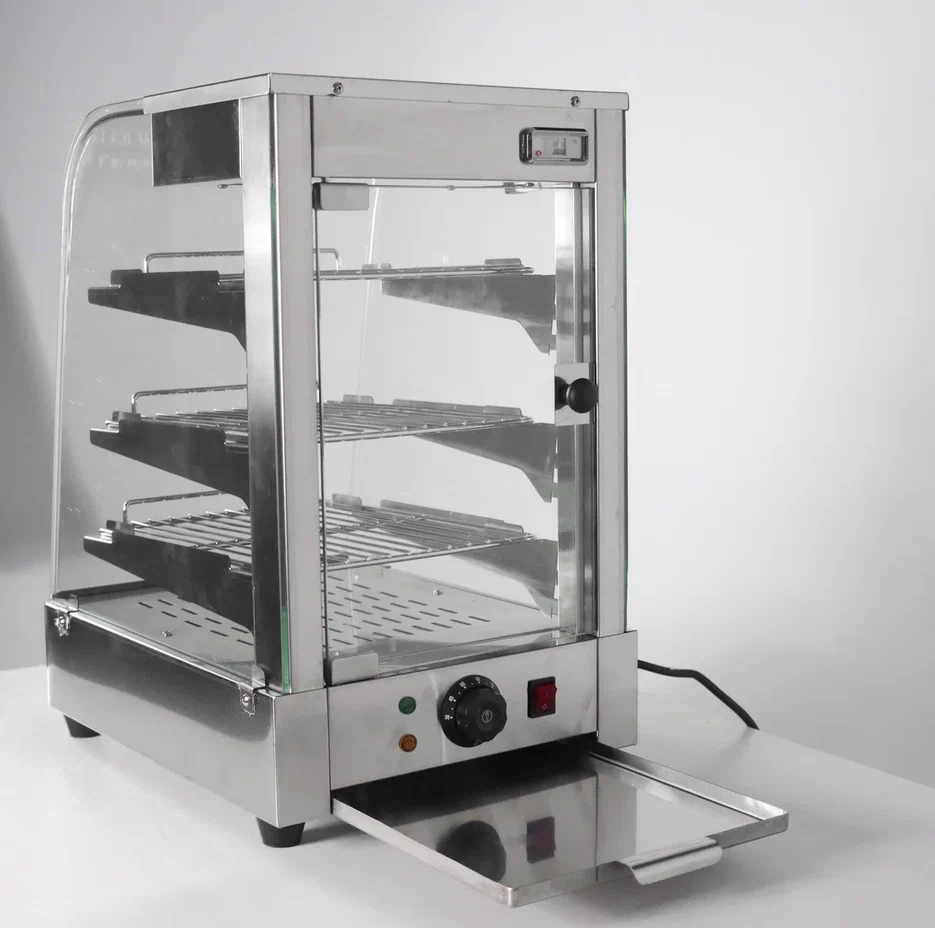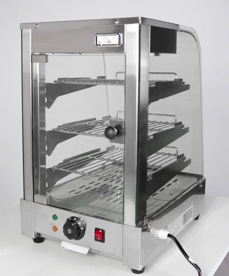 Тепловая витрина Rosso HW-861 предназначена для демонстрации и поддержания блюд в горячем состоянии на предприятиях общественного питания и торговли. Модель оснащена термостатом, декоративной лампой освещения для лучшего вида пищевых продуктов, поворотным переключателем для выбора температуры и 3 полками из нержавеющей стали функцией увлажнения.