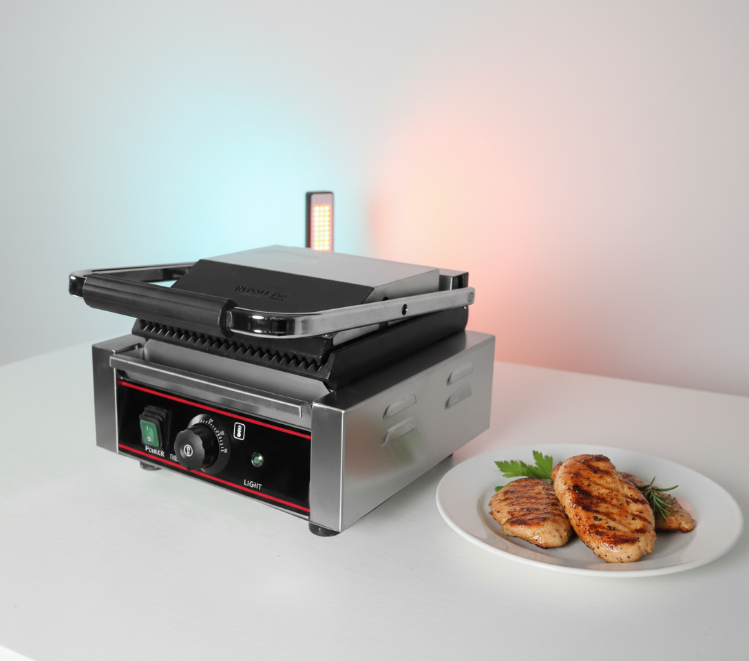 чугунные рабочие пластины, поддон для жира, индикатор работы и нагрева