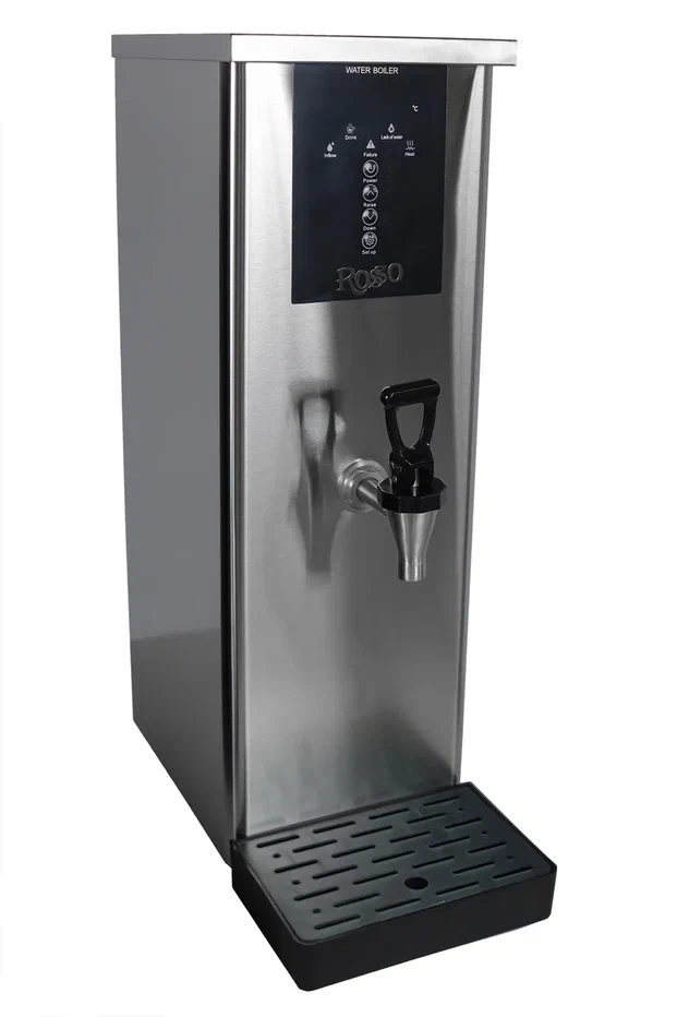 Проточный кипятильник ROSSO предназначен для быстрого нагрева воды и поддержания ее температуры в течение длительного времени. Кипятильник требует подключения не только к электросети, но и к водопроводу, и позволяет непрерывно разливать кипяток, не заботясь об уровне воды в резервуаре. Настольный электрокипятильник оптимален для линий раздачи ресторанов, кафе, столовых, закусочных. Он также идеально подойдет для приготовления горячих напитков в барах и оснащения детских садиков, школ, офисов и больниц. Кипятильник ROSSO работает по принципу ступенчатого нагрева воды. Электроды в каждой ступени посылают сигнал на микрокомпьютер, который, обрабатывая сигналы, активирует нагревательный элемент и электромагнитный клапан, тем самым регулируя температуру и объем подачи воды. Таким образом, вода, нагретая на одном уровне, закипает. Затем нагревается следующий уровень, в результате формируется ступенчатый цикл нагрева. Такая технология позволяет избавиться от повторного нагрева воды и экономит её потребление. 25л/ч