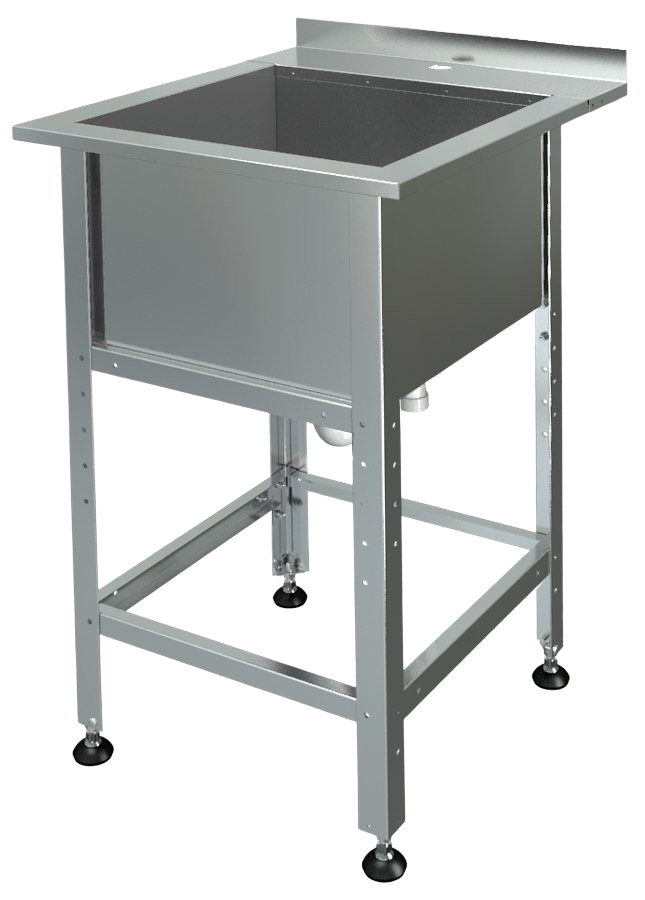 Ножки с регулируемыми опорами — оцинкованная / нерж. сталь, выполнены из уголка 40х40мм. t=1,0 мм с подгибом краёв во внутрь. Каркас оцинкованная/ нерж. сталь t=1,0 мм. Ванна из нерж. сталь AISI 304 t=0,6 мм. (емкости длиной 1,35 и 1,55 из нерж. сталь AISI 430 t=0,8мм). В комплект входит гофросифон. На мойках имеются специальные борты с отверстиями под смеситель.