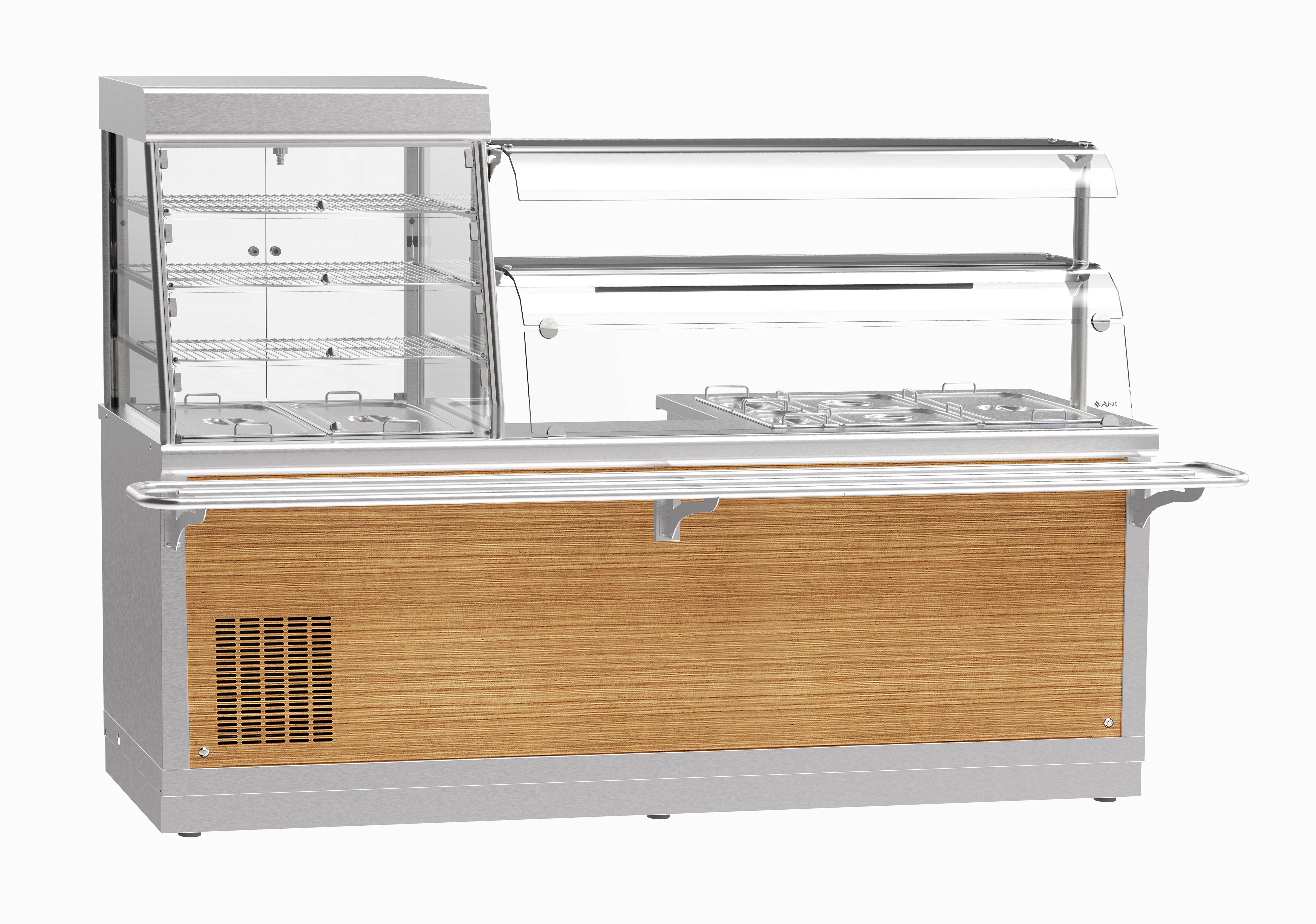 Прилавок-витрина холодильный мармитный универсальный ПВХМ -70Х предназначен для кратковременного сохранения: холодных закусок в витрине, а также первых и вторых блюд в гастроёмкостях в горячем состоянии и раздачи их потребителям.