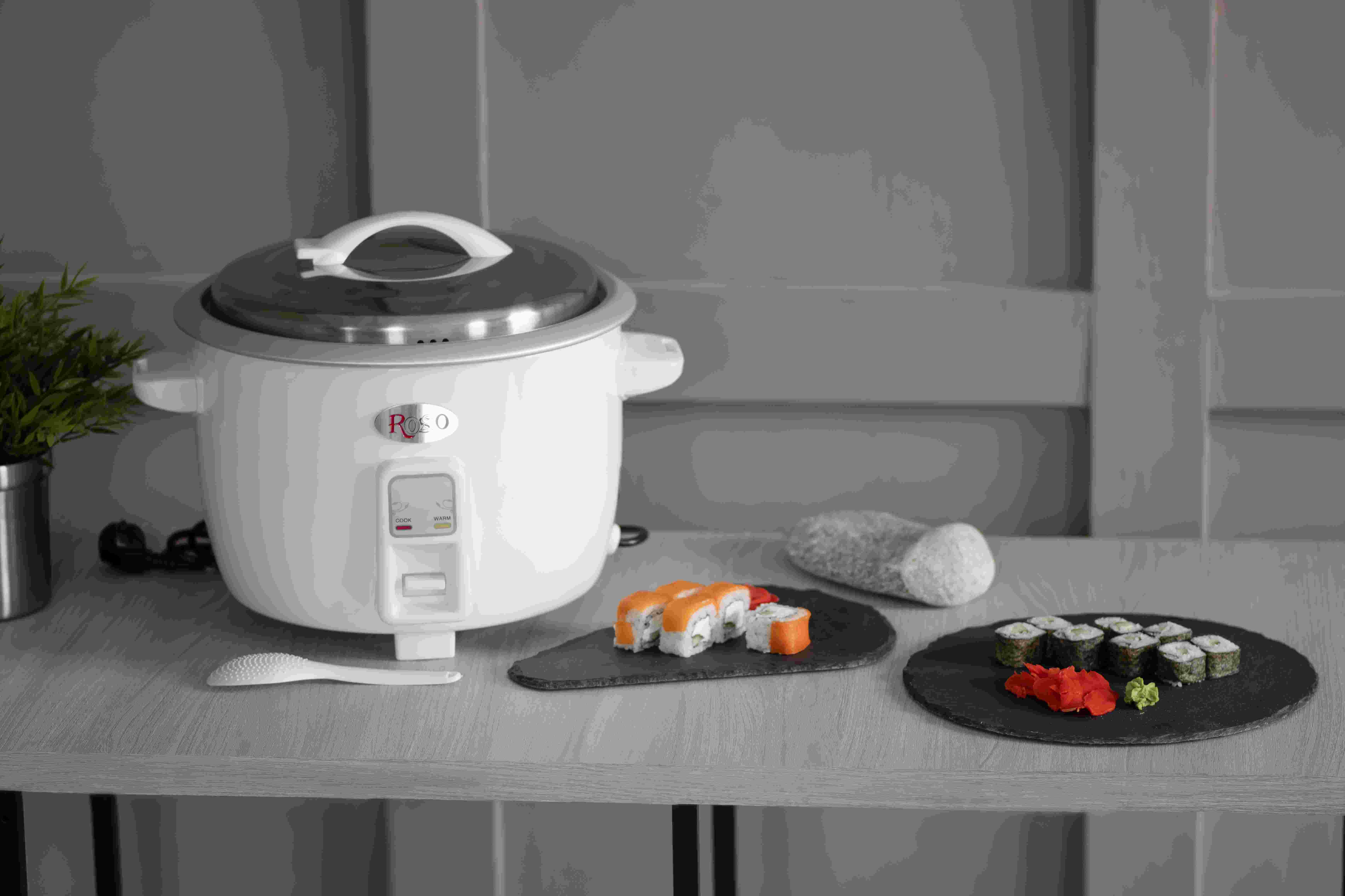 Рисоварка Rosso ERC-13L используется на предприятиях общественного питания и торговли для приготовления, хранения и поддержания отваренного риса в разогретом виде. Модель оснащена панелью управления с выключателем и светодиодными индикаторами режимов работы, съемной емкостью для риса, крышкой с рукояткой и устойчивыми ножками.