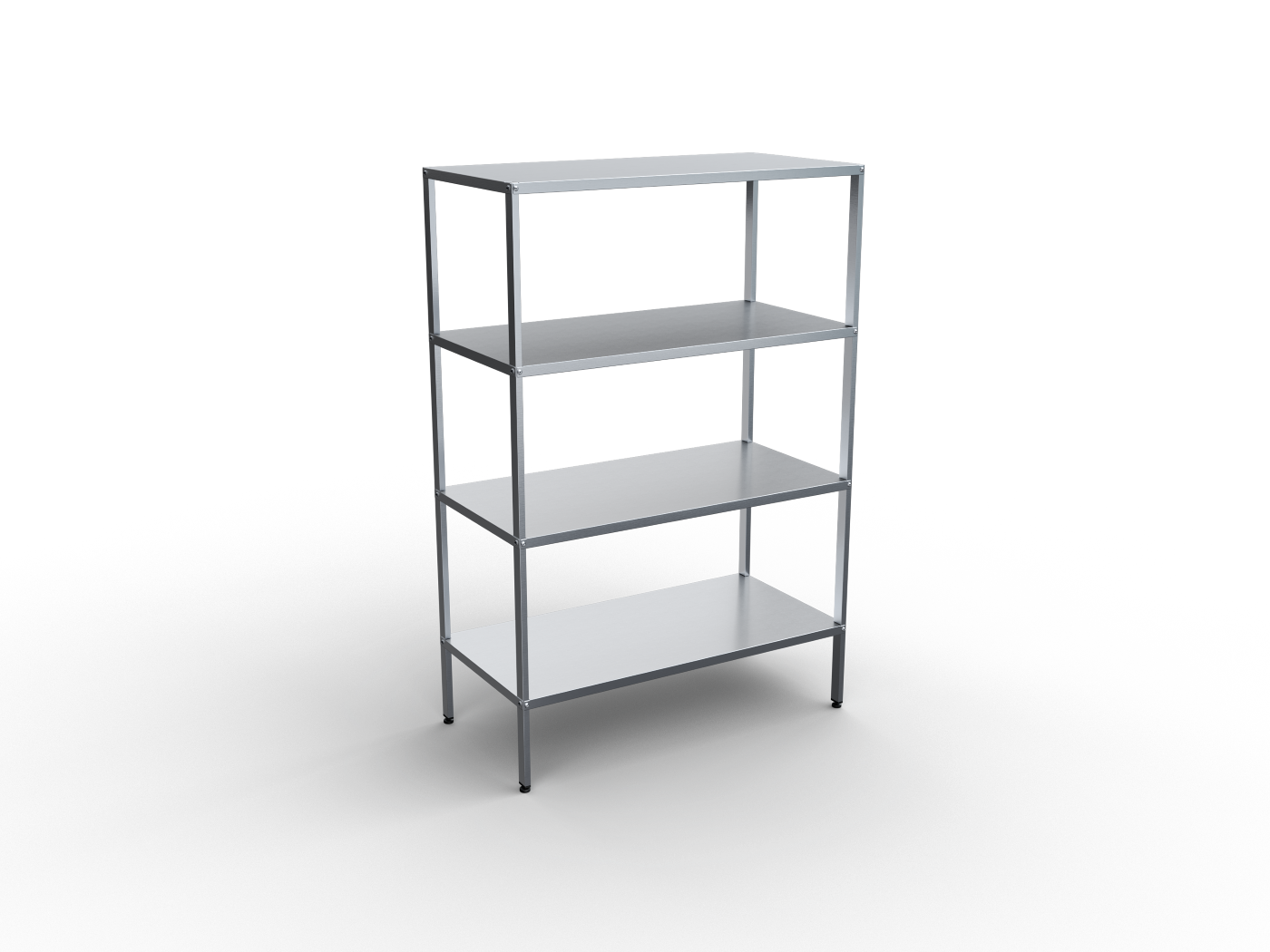 Стеллаж кухонный многоцелевой оснащен четырьмя уровнями хранения. Полки толщиной 0,8 мм выполненные из нержавеющей стали марки AISI 430 крепятся на технологические отверстия в стойках выполненых из трубы профильной 40х20 марки AISI 430 и толщиной 1,2 мм. Регулируемые опоры. Поставляется стеллаж в разобранном виде. Вариант поставки 4 полки и разборный каркас из профильной трубы . Нагрузка на полку равнораспределенная 200 кг. Вес полного комплекта 39 кг. Габариты упаковки полок 1215х615х143 мм.