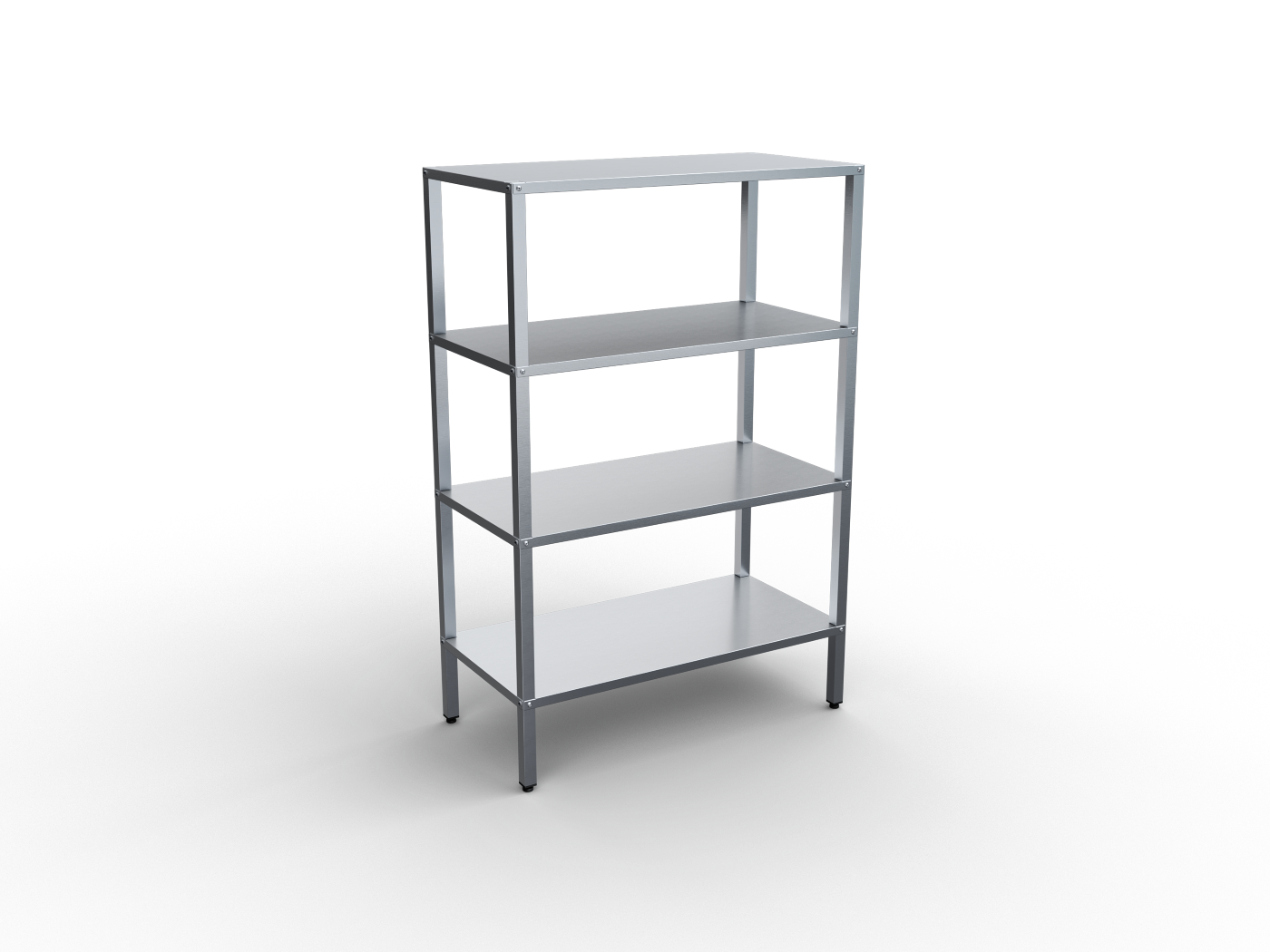 Стеллаж кухонный многоцелевой оснащен четырьмя уровнями хранения. Полки толщиной 0,8 мм выполненные из нержавеющей стали марки AISI 430 крепятся на технологические отверстия в стойках выполненых из трубы профильной 40х20 марки AISI 430 и толщиной 1,2 мм. Регулируемые опоры. Поставляется стеллаж в разобранном виде. Вариант поставки 4 полки и разборный каркас из профильной трубы . Нагрузка на полку равнораспределенная 200 кг. Вес полного комплекта 22 кг. Габариты упаковки полок 515х615х143 мм.