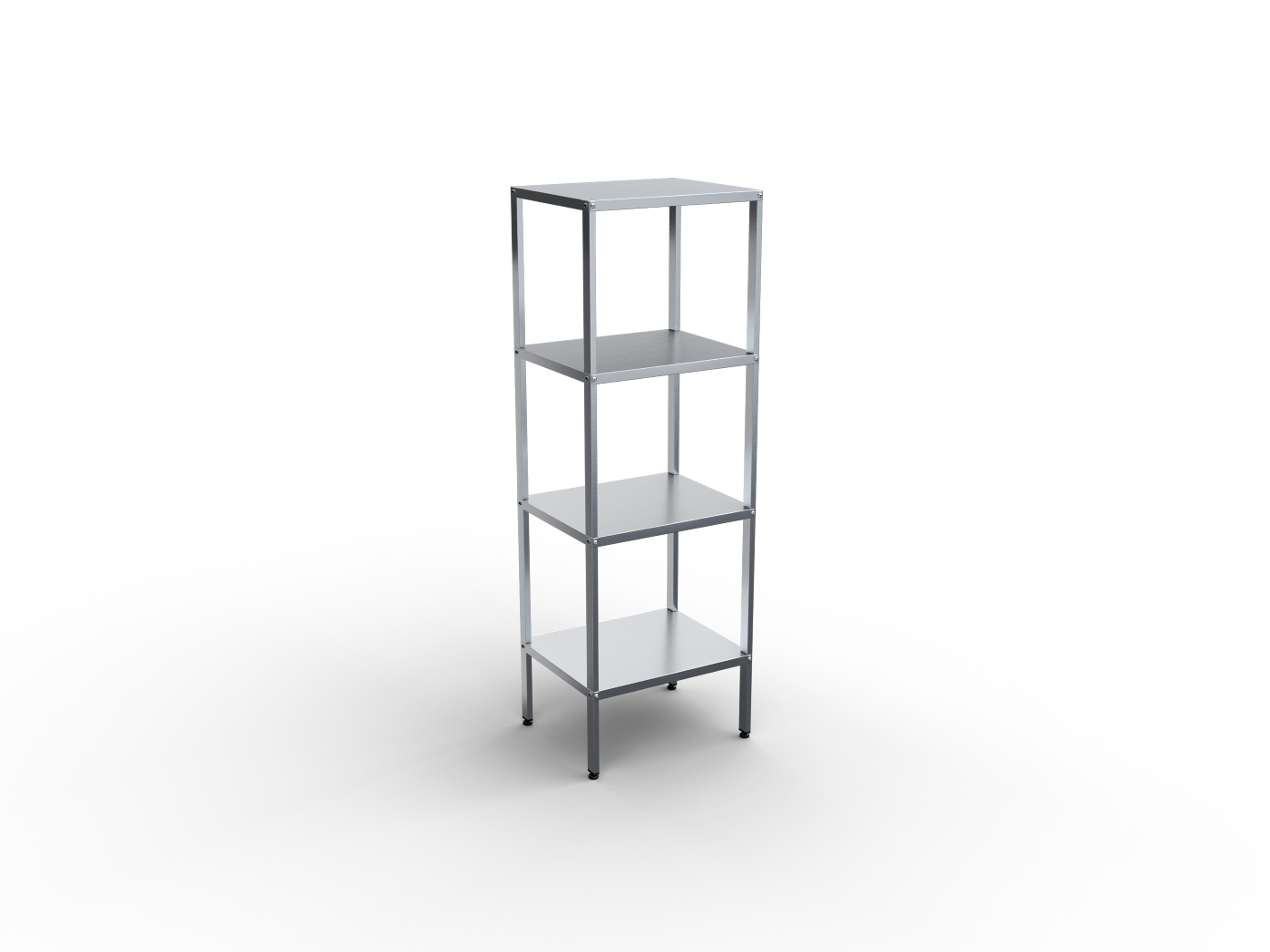 Стеллаж кухонный многоцелевой оснащен четырьмя уровнями хранения. Полки толщиной 0,8 мм выполненные из нержавеющей стали марки AISI 430 крепятся на технологические отверстия в стойках выполненых из трубы профильной 40х20 марки AISI 430 и толщиной 1,2 мм. Регулируемые опоры. Поставляется стеллаж в разобранном виде. Вариант поставки 4 полки и разборный каркас из профильной трубы . Нагрузка на полку равнораспределенная 200 кг. Вес полного комплекта 23 кг. Габариты упаковки полок 715х515х143 мм.