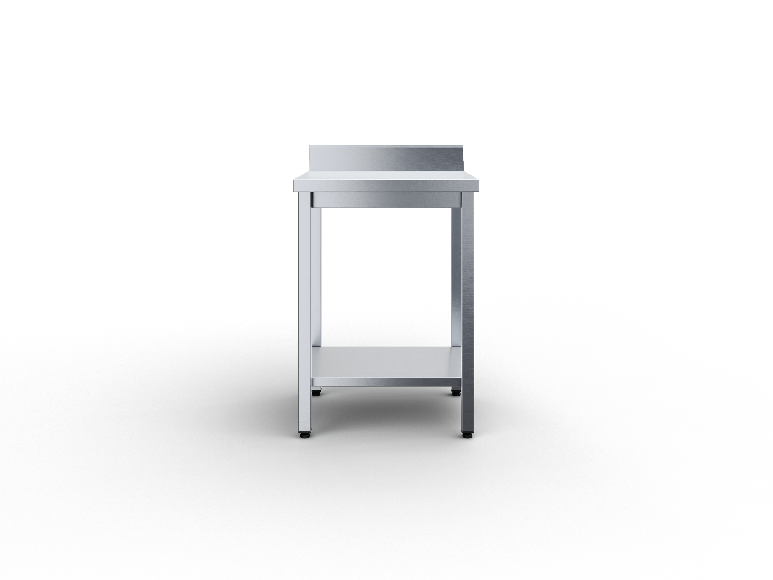 Стол производственый с столешницей из нержавеющей стали марки AISI 430 толщиной 0,8мм. Столешница усилена подложкой из фанеры толщиной 16 мм. Сплошная полка и из нержавеющей стали марки AISI 430 толщиной 0,8мм. Ножки каркаса из профильной трубы 40х40 нержавеющей стали марки AISI 430 толщиной 1,2 мм. Регулируемые опоры. У производственного стола имеется съёмный борт из нержавеющей стали марки AISI 430 толщиной 0,8мм. Нагрузка на все изделие равнораспределенная 250 кг. Стол поставляется в разобранном виде. В упакованном виде изделие имеет габариты 615х615х115 мм. Вес изделия 18 кг.