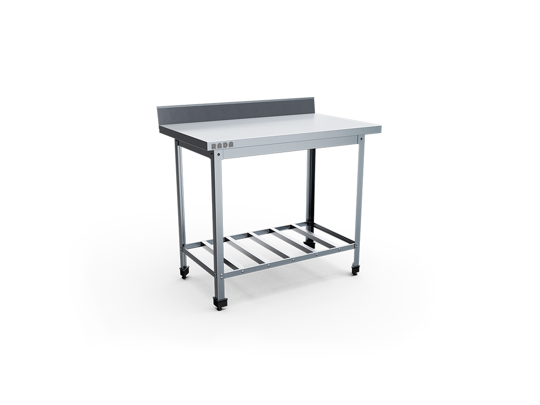 Стол производственый с столешницей из нержавеющей стали марки AISI 430 толщиной 0,8мм. Столешница усилена подложкой из фанеры толщиной 16 мм. Сплошная полка и из нержавеющей стали марки AISI 430 толщиной 0,8мм. Ножки-уголки 40х40 каркаса изготовлены из нержавеющей стали марки AISI 430 толщиной 1 мм. Регулируемые опоры. У производственного стола имеется съёмный борт из нержавеющей стали марки AISI 430 толщиной 0,8мм. Нагрузка равнораспределенная на столешницу 100 кг, распределенная нагрузка на полку 20кг. Стол поставляется в разобранном виде. В упакованном виде изделие имеет габариты 1015х615х110 мм. Вес изделия 21,5 кг.