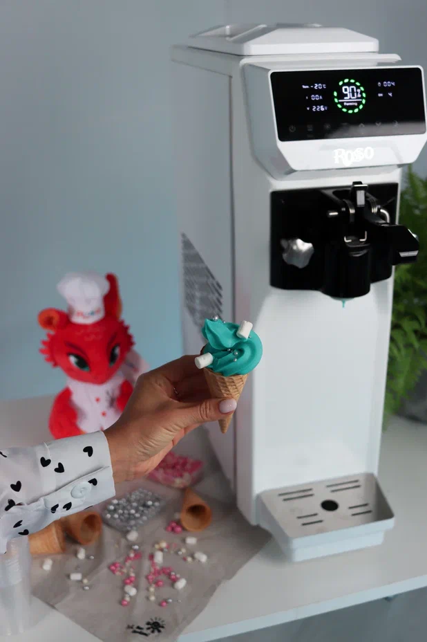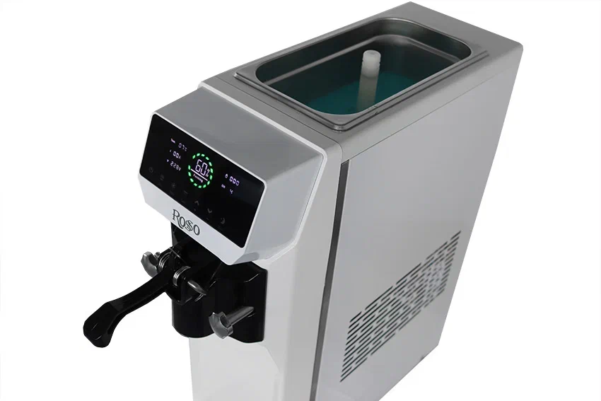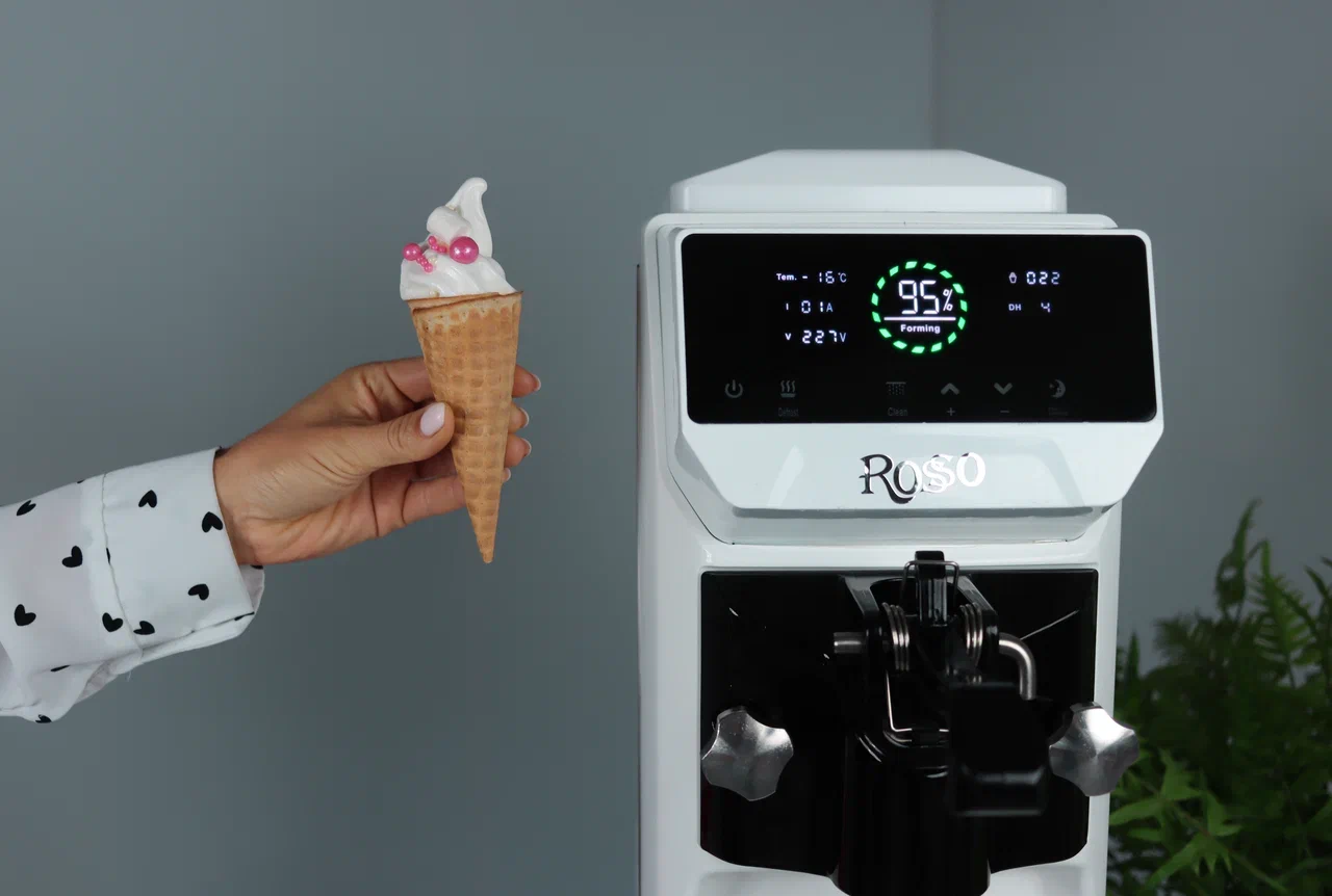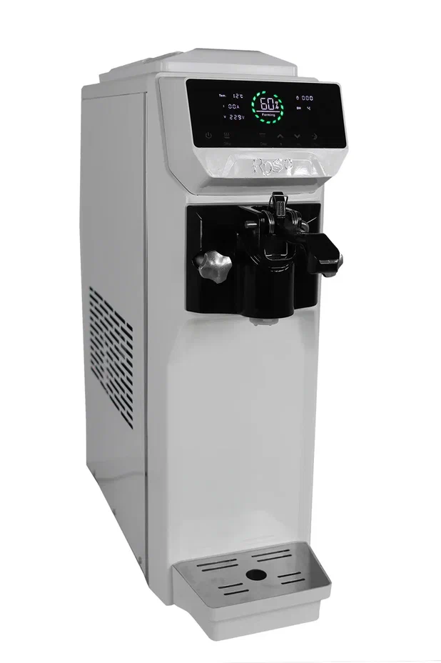Фризер ROSSO для мягкого мороженого SKF-AT1116. Корпус из нержавеющей стали. Сенсорная панель управления — 7 дюймов. Счетчик рожков со сбросом счетчика. Функция разморозки в одно касание. Производительность 12-16 л/ч, 1-1,8 кг/ч. Имеет фунцию ночного хранения.