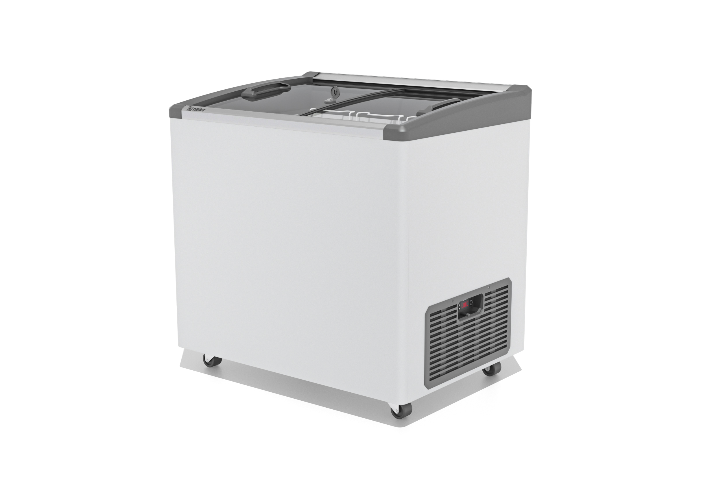 Морозильный ларь FG 250 E хорошо подходит для стационарных торговых точек небольшого и среднего размера, мини-маркетов и сетевых магазинов у дома. Прочная, надежная конструкция из оцинкованной стали гарантирует долговечность и презентабельный внешний вид. Изогнутые стеклянные шторки с ярким верхним профилем из ударопрочного, морозостойкого пластика и дополнительным уплотнителем позволяют оптимально представить товар покупателю и сохранить заданную температуру хранения продуктов.