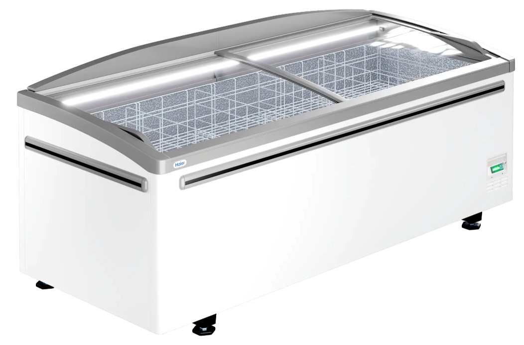 Ларь-бонета Haier GTE1850W белого цвета используется для демонстрации и поддержания в охлажденном состоянии скоропортящихся продуктов на предприятиях общественного питания и торговли.
