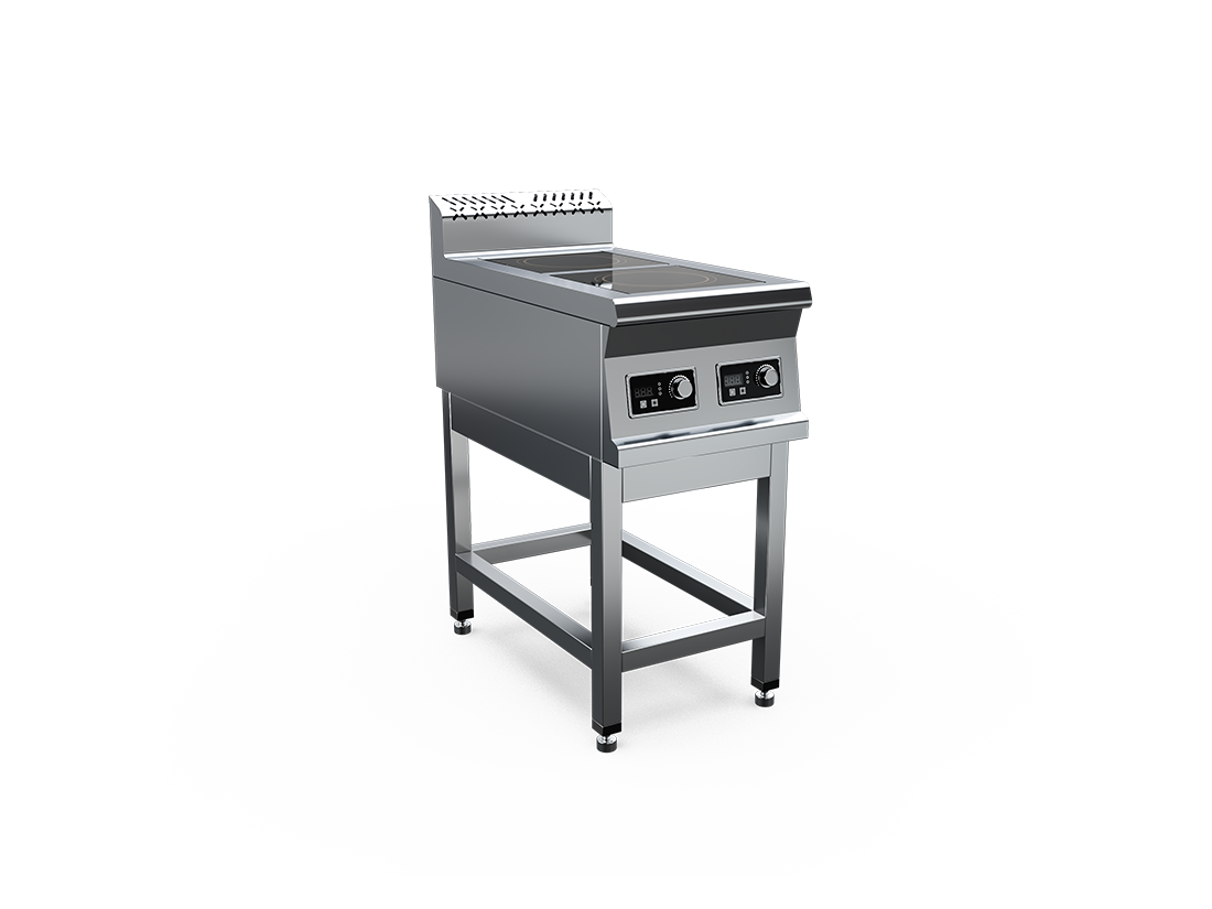 Плита индукционная, столешница из нержавеющей стали марки AISI 430 толщиной 1 мм, корпус из нержавеющей стали марки AISI 430 толщиной 0,8 мм. Имеет 2 конфорки мощностью по 3,5 кВт, питание 380 В. Габариты стеклокерамики 280х280х6 мм. Подставка поставляется в разобранном виде. Вес плиты индукционной 28 кг. Габариты упаковки 415х765х485 мм.