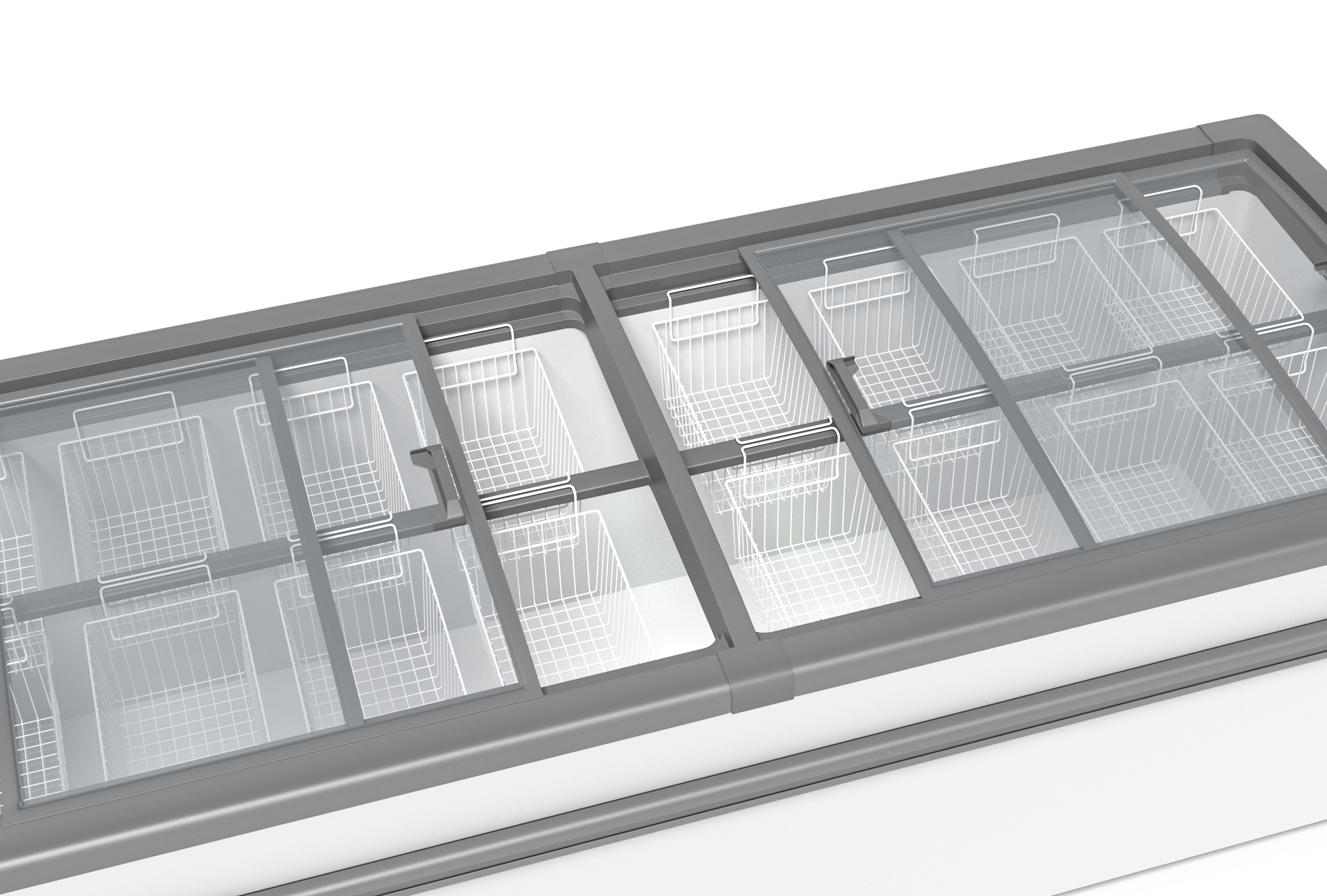 Особое внимание уделено прозрачности и прочности стекла. 16 корзин позволяют выложить товар на верхнем ярусе, максимально полно демонстрируя его покупателю. По желанию на бонеты может быть установлен замок или специальная конструкция с внутренней подсветкой. Класс энергоэкономичности бонеты – А.
